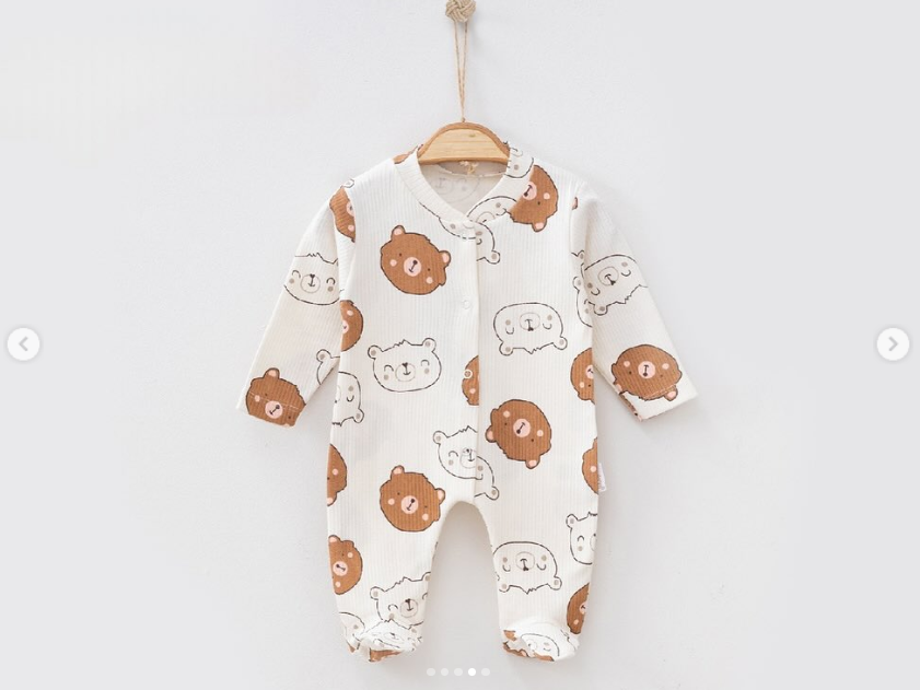Ayıcık desenli ayaklı raporlu bebek tulum