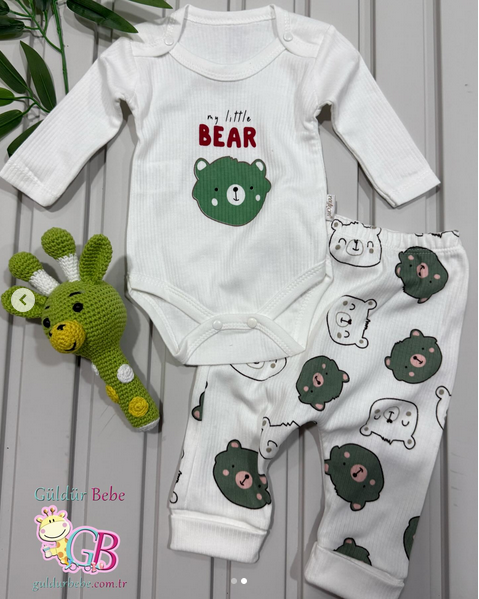 Bear baskılı ribanalı kumaş ikili bebek takım