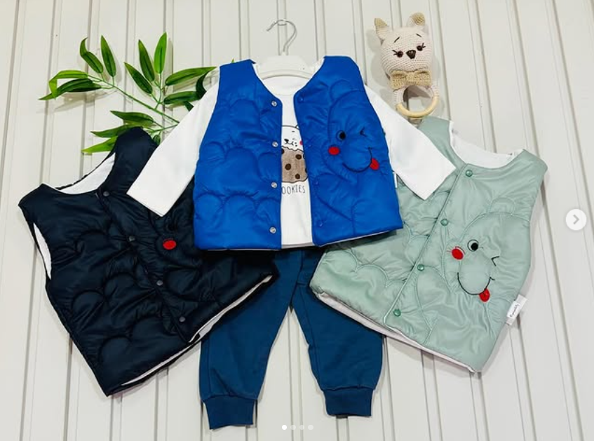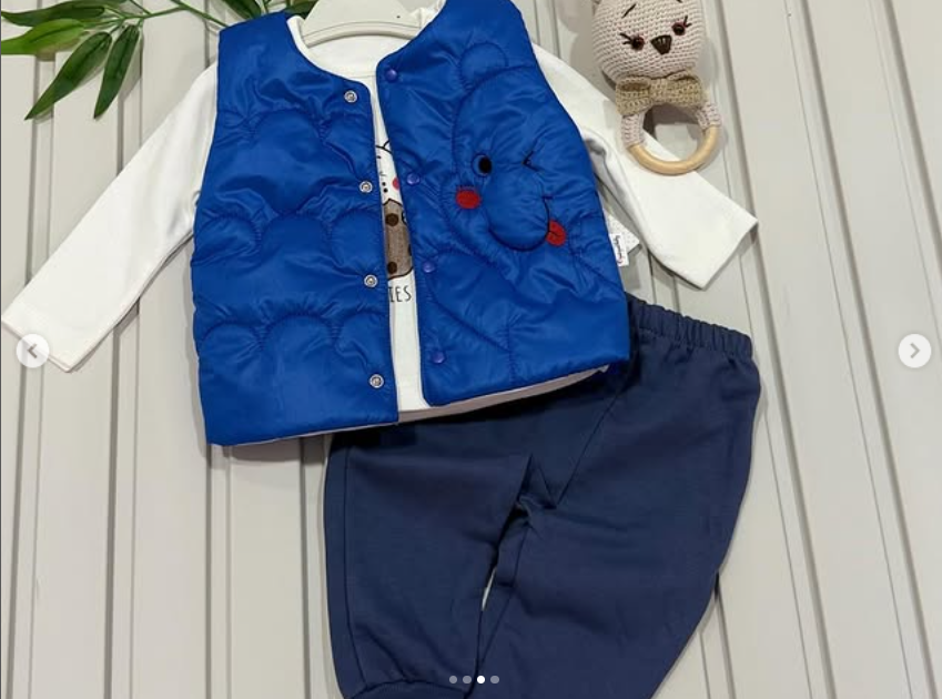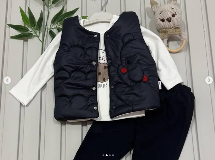 Gülen ayıcıklar nakışlı yelekli 3’lü bebek takım