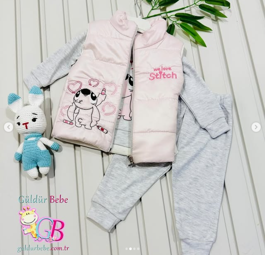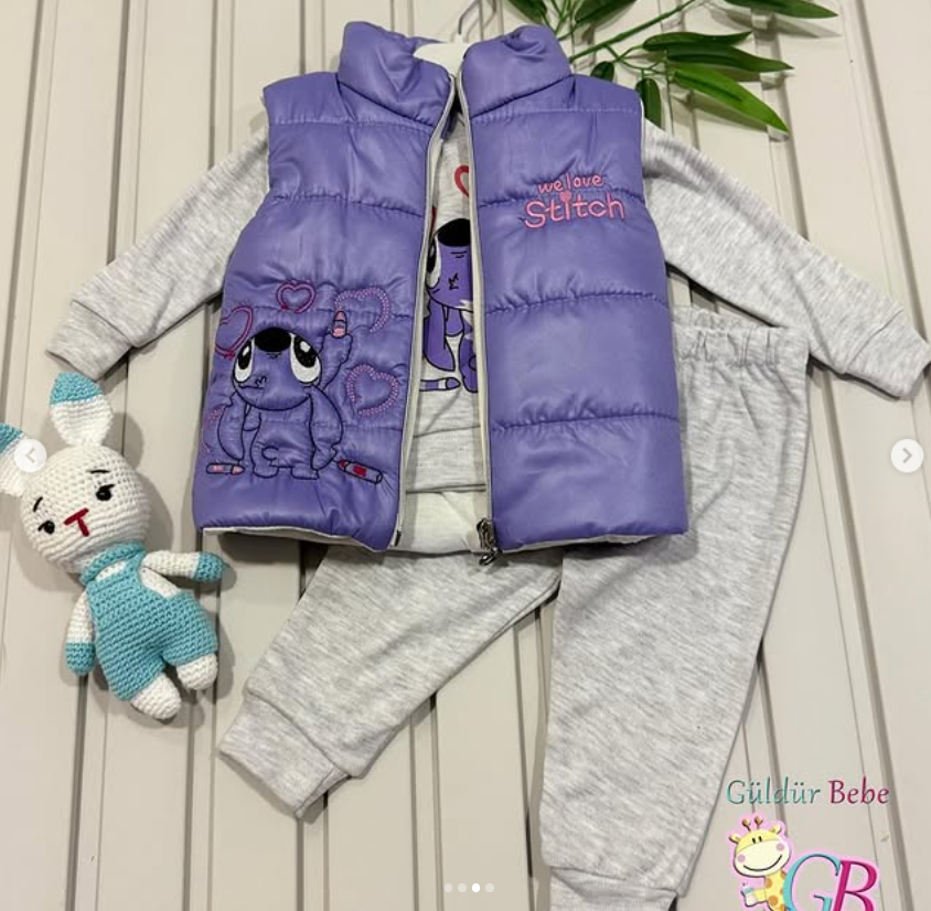 Kalpli fil nakışlı yelekli 3’lü bebek takım