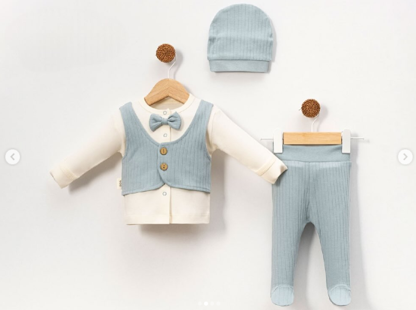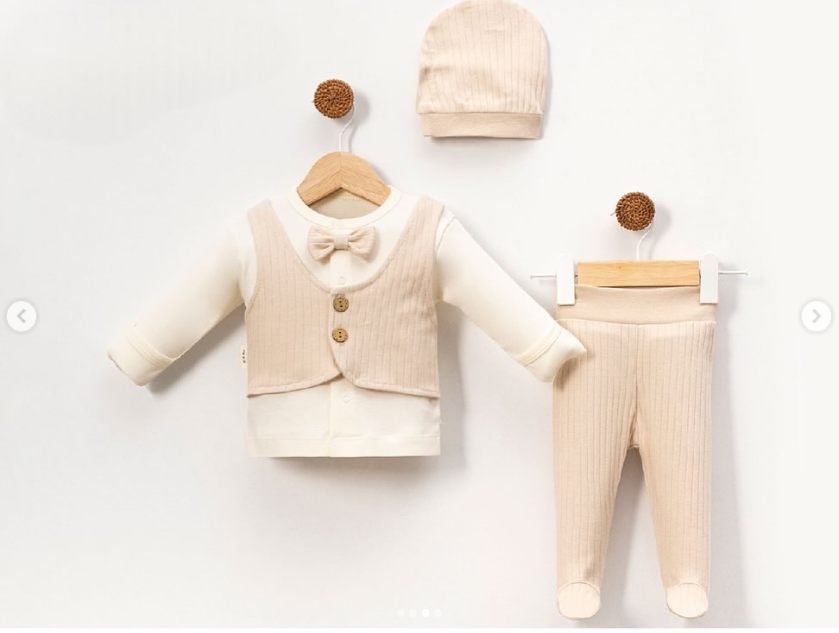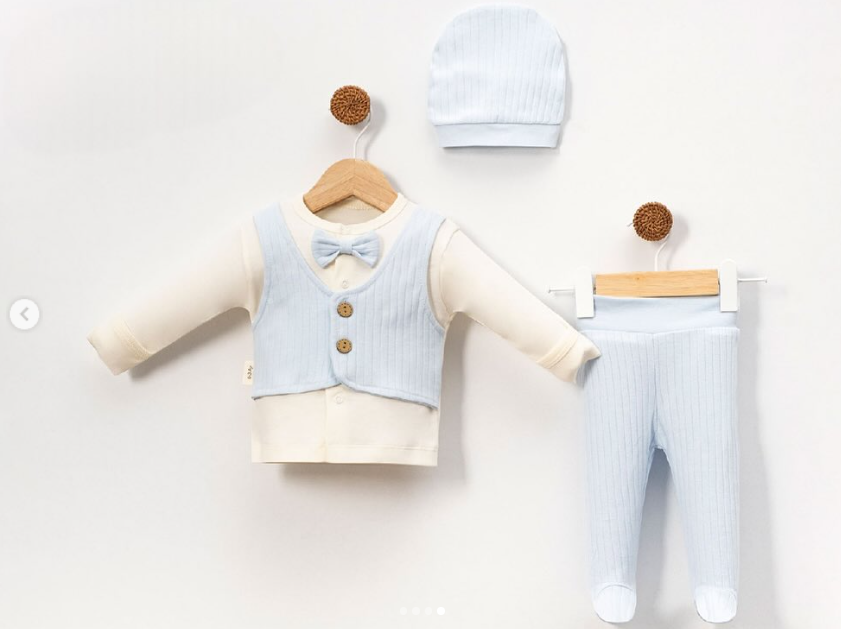 Papyonlu yelekli 3’lü erkek bebek zıbın set
