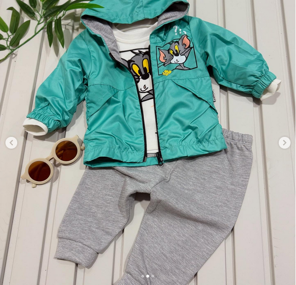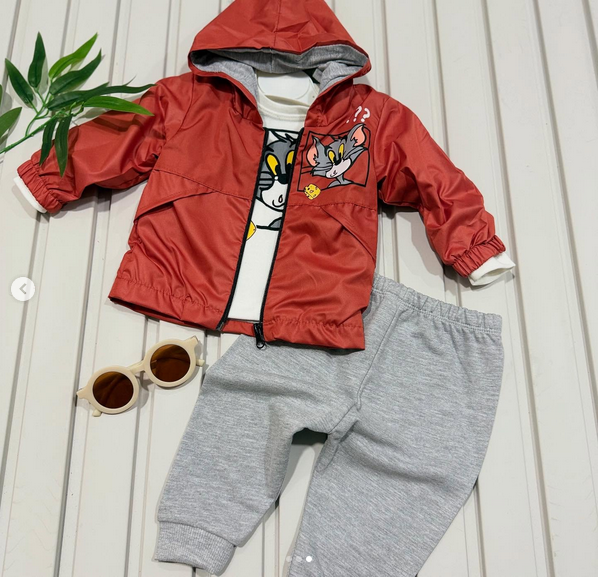 Tom ve Jerry baskılı arkası desenli dört mevsimlik 3’lü bebek takım