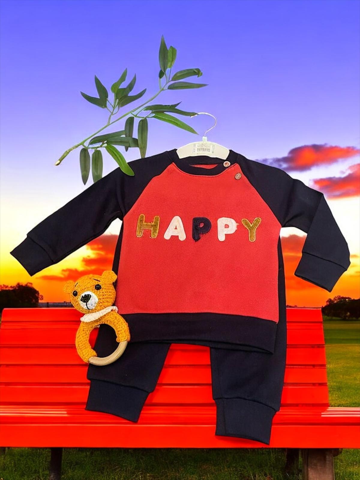 Yakadan düğmeli Happy Yazılı Ünisex ikili Takım
